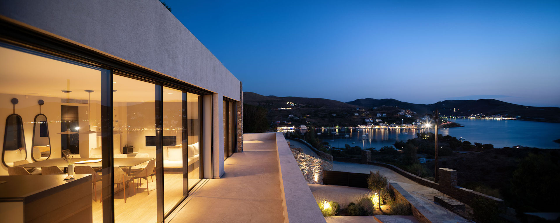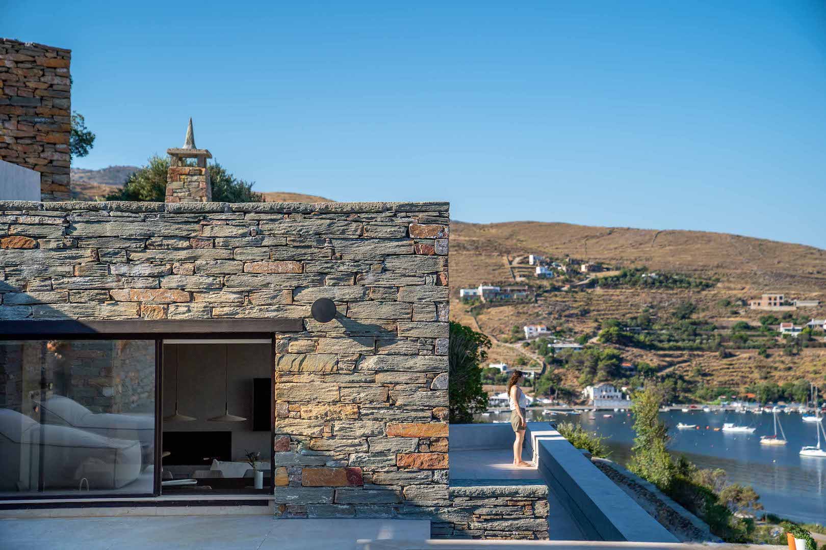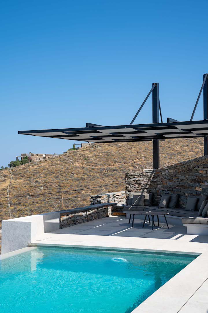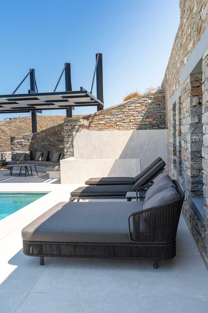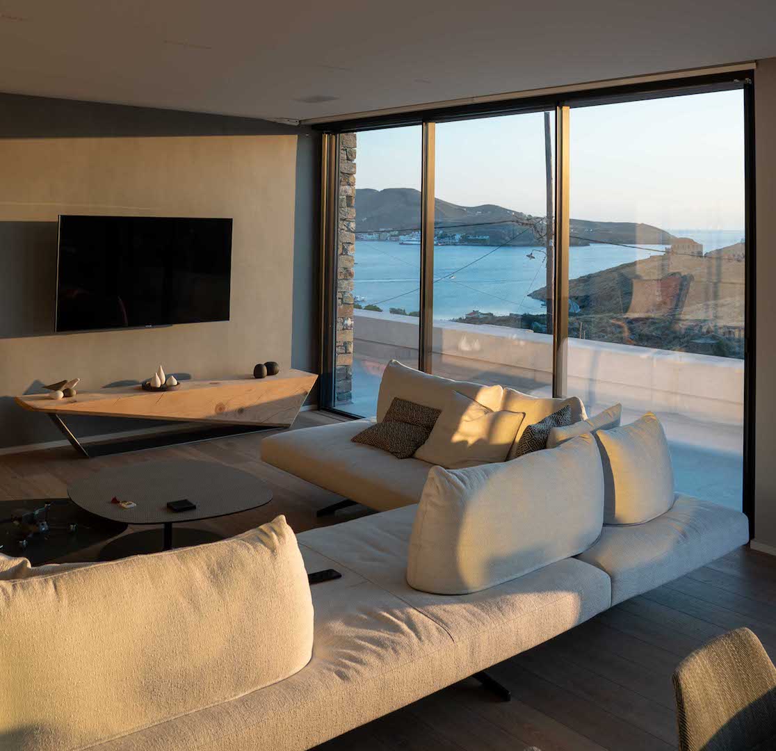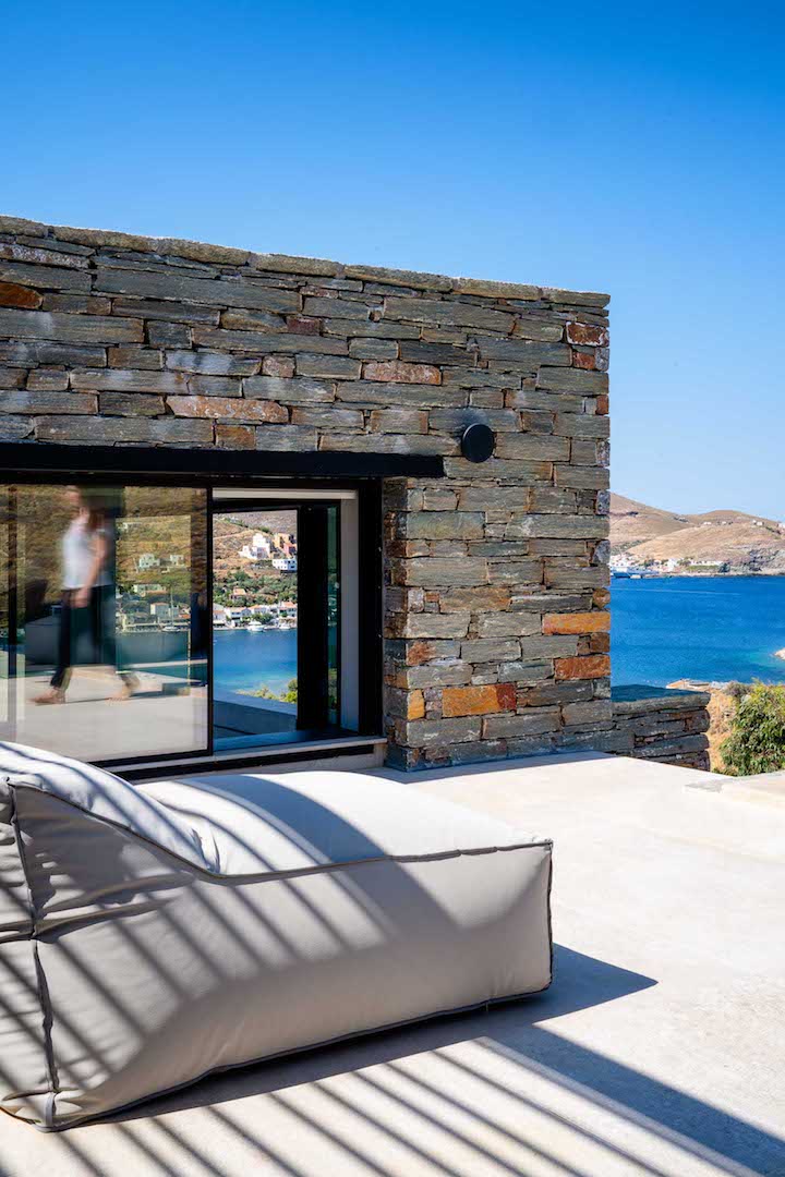 Its architectural design is fully blended with the area’s landscape: both outdoors and indoors, the local stone dominates its decor and in combination with wooden floors and furniture, it adds a tone of warmth and luxury to the space. The villa is equipped with carefully hand-picked furniture and decoration items, offers all modern comforts while the wide windows and doors allow the unlimited view of the calm bay to intrude inside all the areas, creating a unique atmosphere. At the same time, the villa offers multiple spacious verandas/ outdoor areas and modern bathrooms.